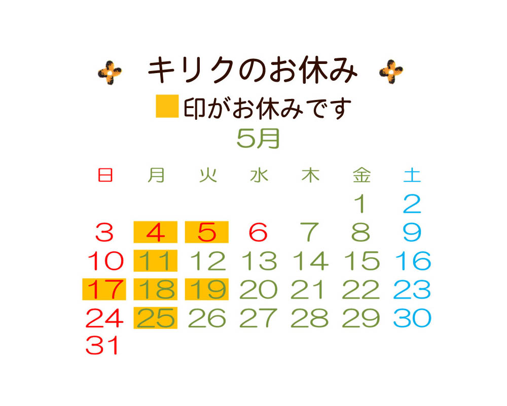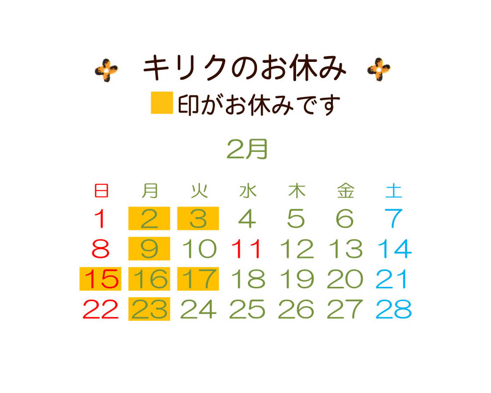 キリクのお休みはコチラ